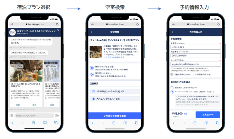 これにより、メッセージアプリを中心に、予約決済までシームレスに行うことで、新しい宿泊予約導線の広がりと同時に、新しいターゲット層の獲得に期待ができます。