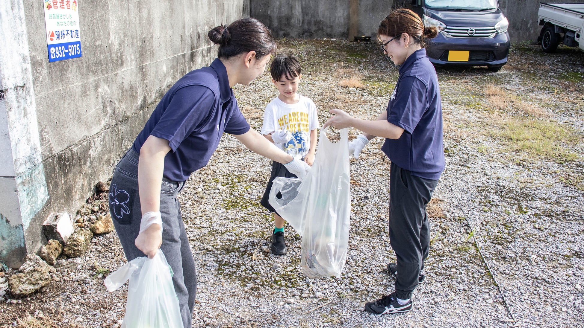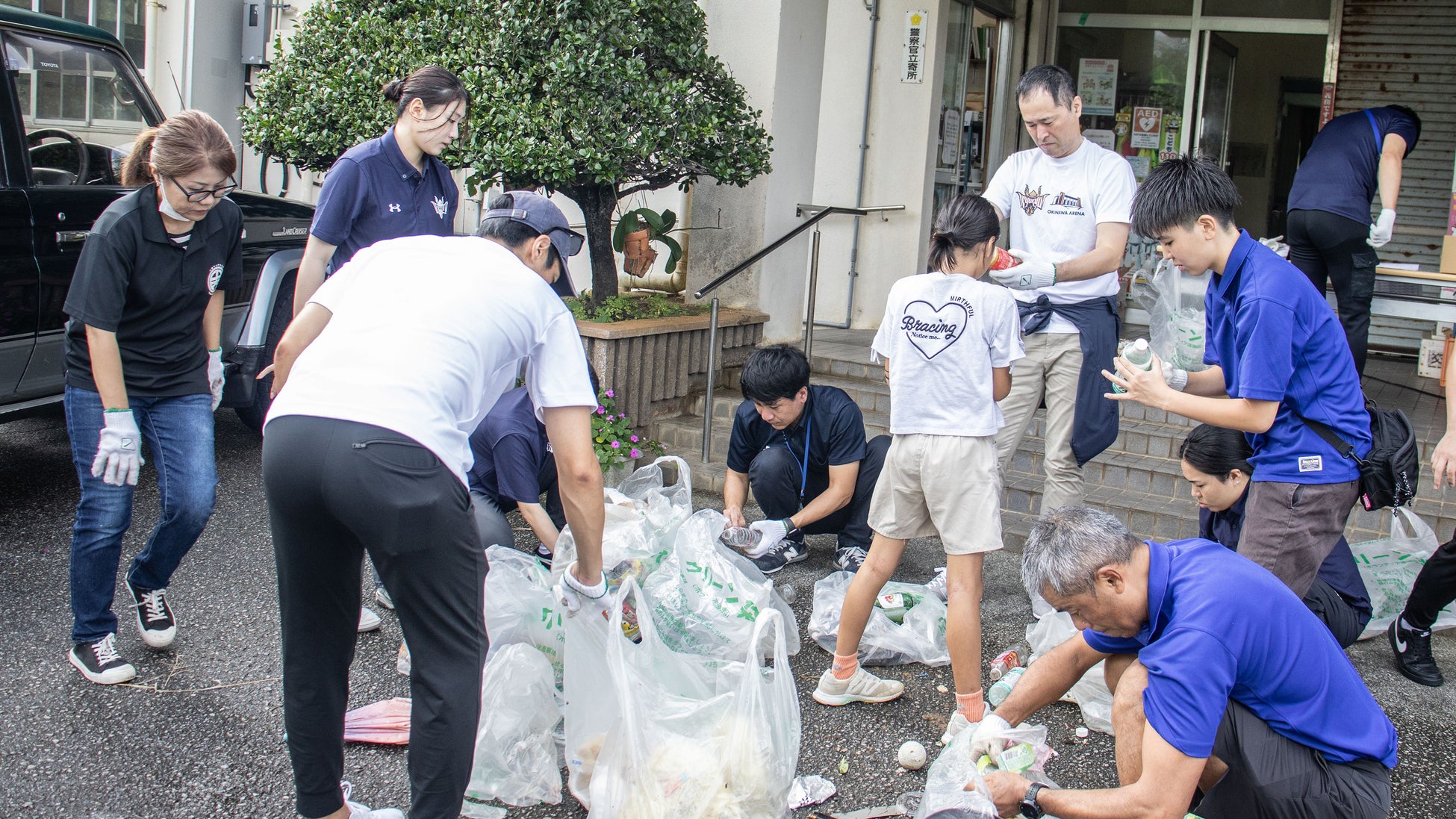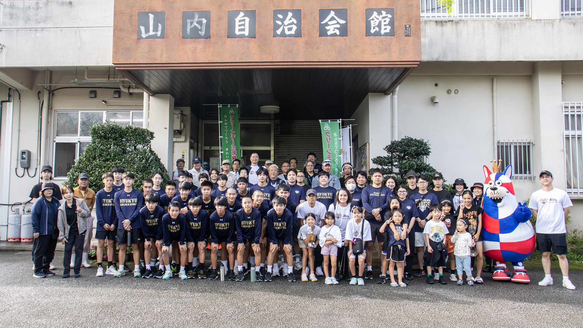 昨年に引き続き、沖縄市の山内地区および沖縄アリーナ周辺で、キングスのマスコット「ゴーディー」や、両社の社員、キングスU15の選手たちが清掃活動を行いました。
