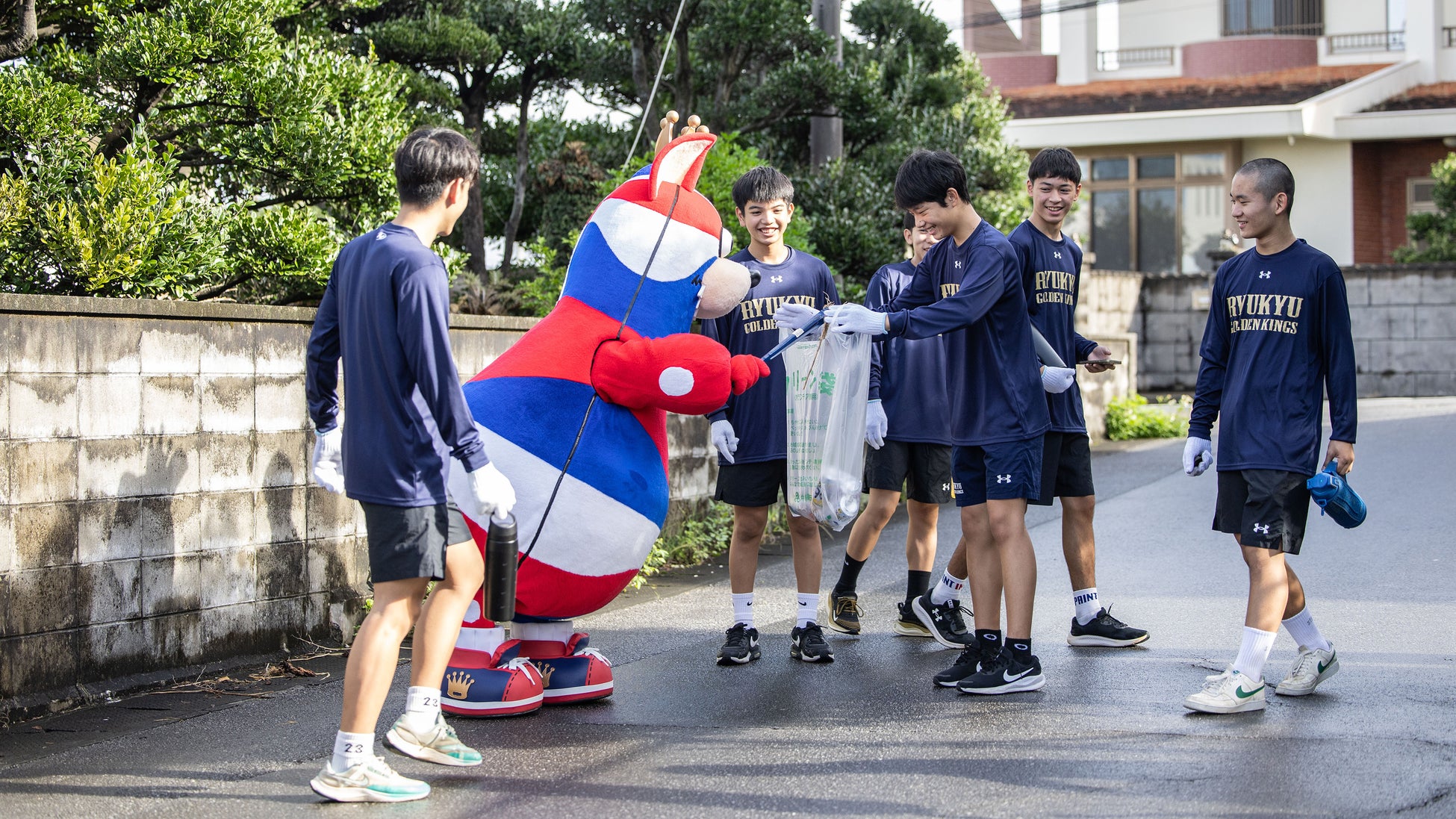 キングスでは「おおきなわ」の活動の一環として、あいさつ運動や地域美化活動、地域との交流活動などを行なっております。今後も、ここ”沖縄”で”大きな輪”を作っていけるよう球団一同取り組んでまいります。