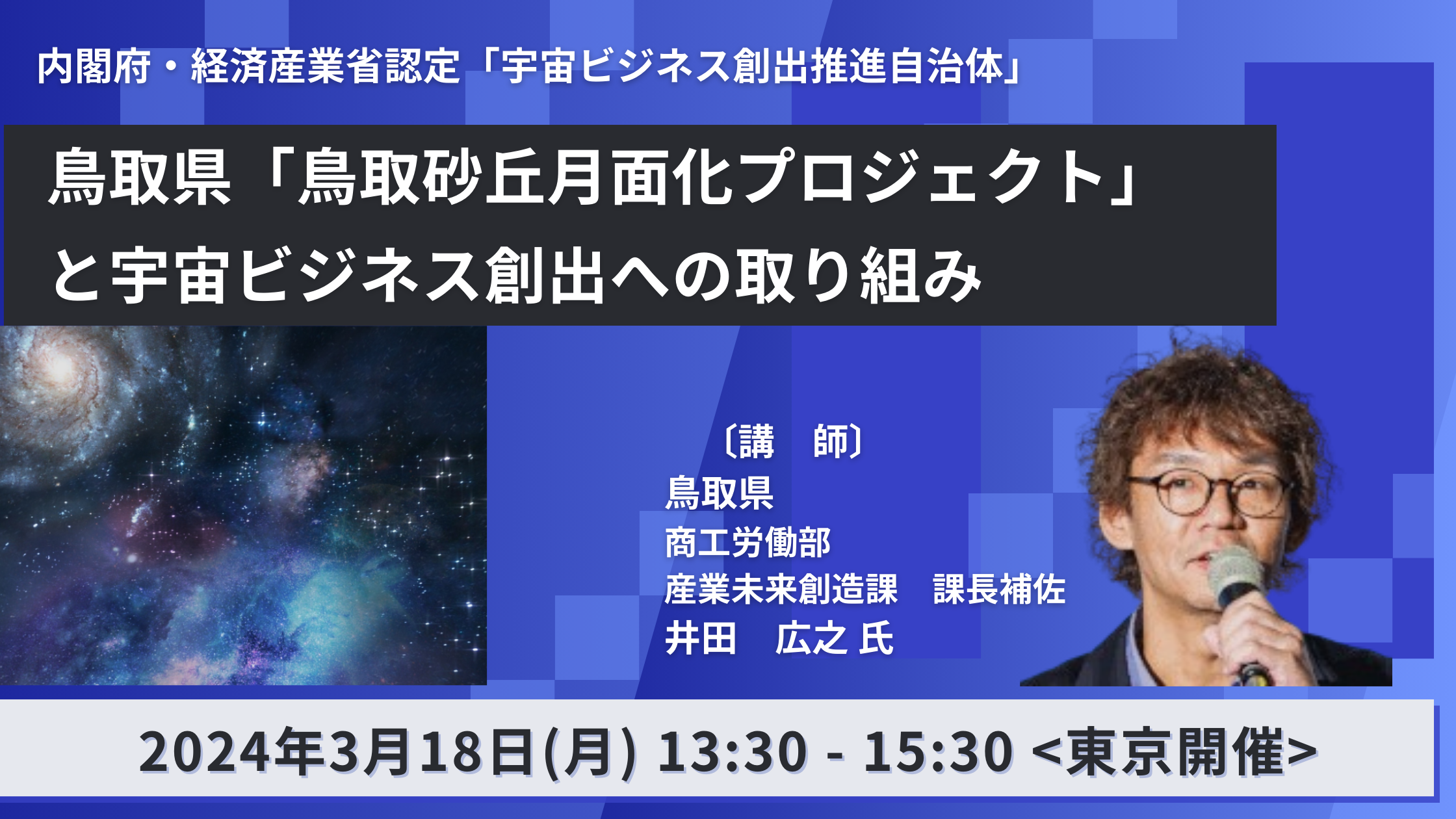 【JPIセミナー】鳥取県「”鳥取砂丘月面化プロジェクト” と宇宙ビジネス創出への取り組み」3月18日(月)<東京開催>