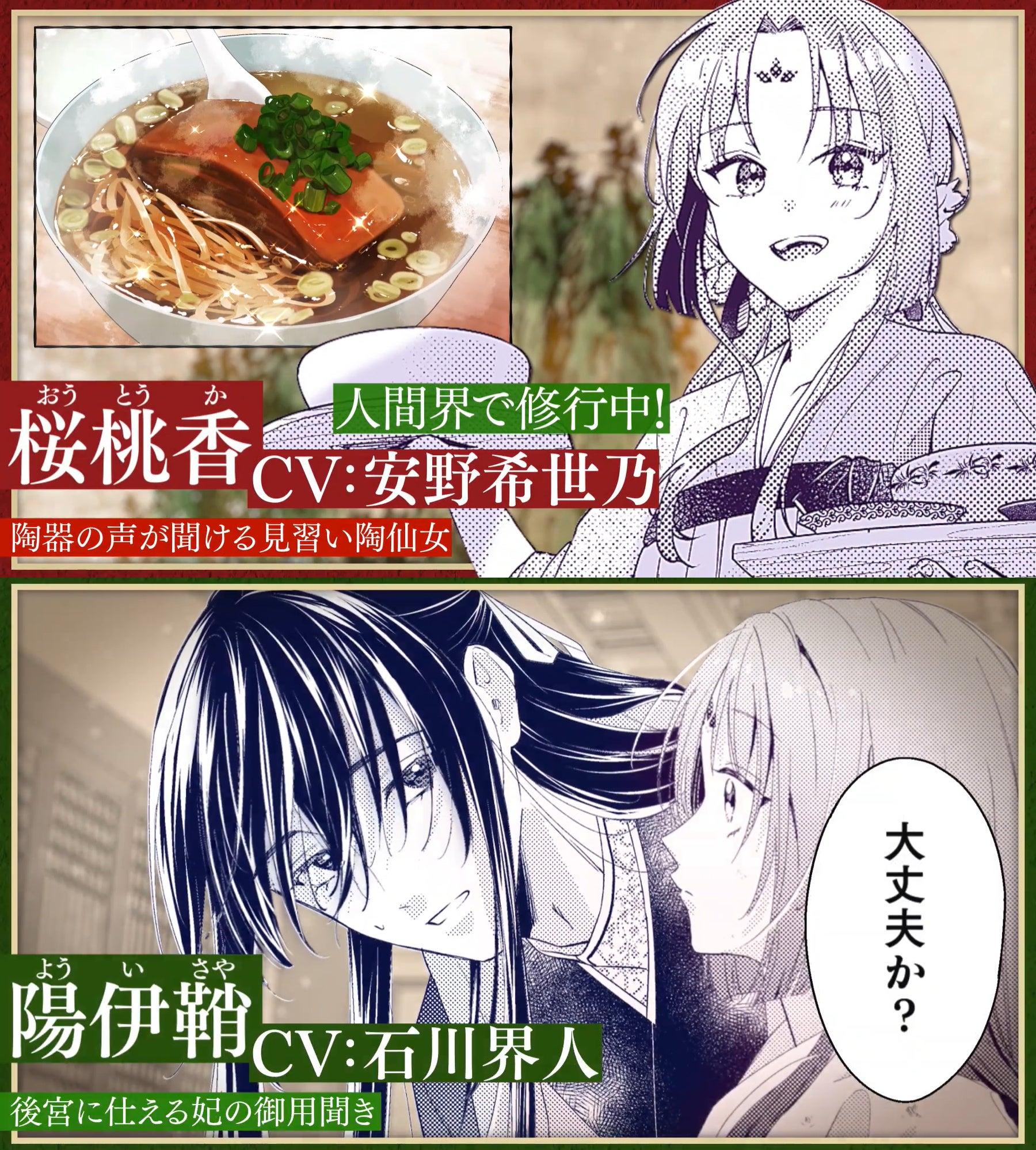 “陶器”の声を聞くことができる、見習い陶仙女・桜桃香(おうとうか)。