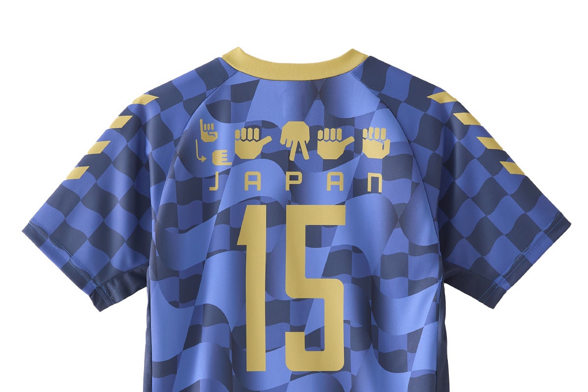 また、デザインを進める上で、デフハンドボール男子日本代表のメンバーやスタッフが参加。その意見を取り入れました。背面上部には日本代表を表す「JAPAN」を指文字とアルファベットで併記。手話を配置したユニフォームになりました。