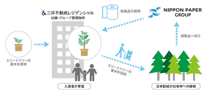 三井不動産レジデンシャル株式会社(本社:東京都中央区、代表取締役社長:嘉村 徹、以下、「三井不動産レジデンシャル」)と日本製紙株式会社(本社:東京都千代田区、代表取締役社長:野沢徹、以下、「日本製紙」)は株式会社三井住友銀行(本店:東京都千代田区、頭取CEO:福留 朗裕、以下「三井住友銀行」)のサポートのもと、誰でも気軽に都心マンションから植林に参加出来る「エリートツリー」苗木の里親プロジェクトのトライアルを開始いたします。