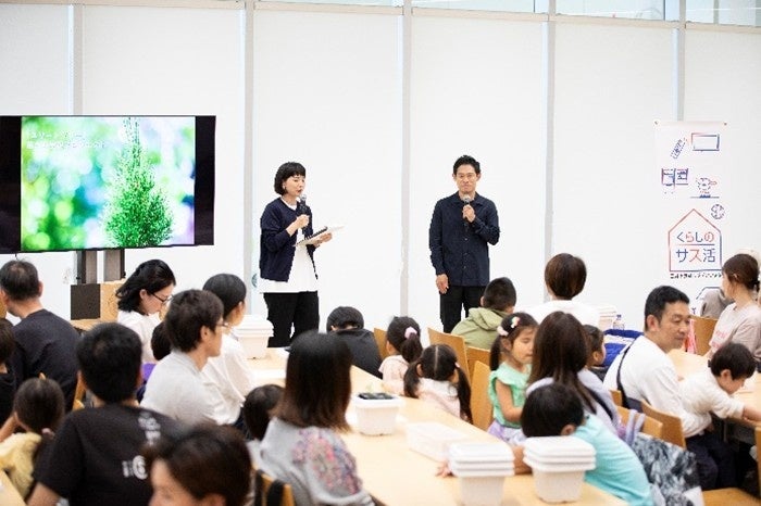 ・ゲストに伊藤淳史さまをお迎えし、トークショーを実施 ・約1年間マンションのご自宅で育苗していただくエリートツリーの苗木のお渡し ・ワークショップではお子様に再生可能な資源である木をもとにした新素材「ミネルパ®」を原材料としたオリジナルポット(植木鉢)へ、エリートツリーが成長した30年後のくらしをテーマにオリジナルのデザインを描いていただき、それぞれ発表を実施 |