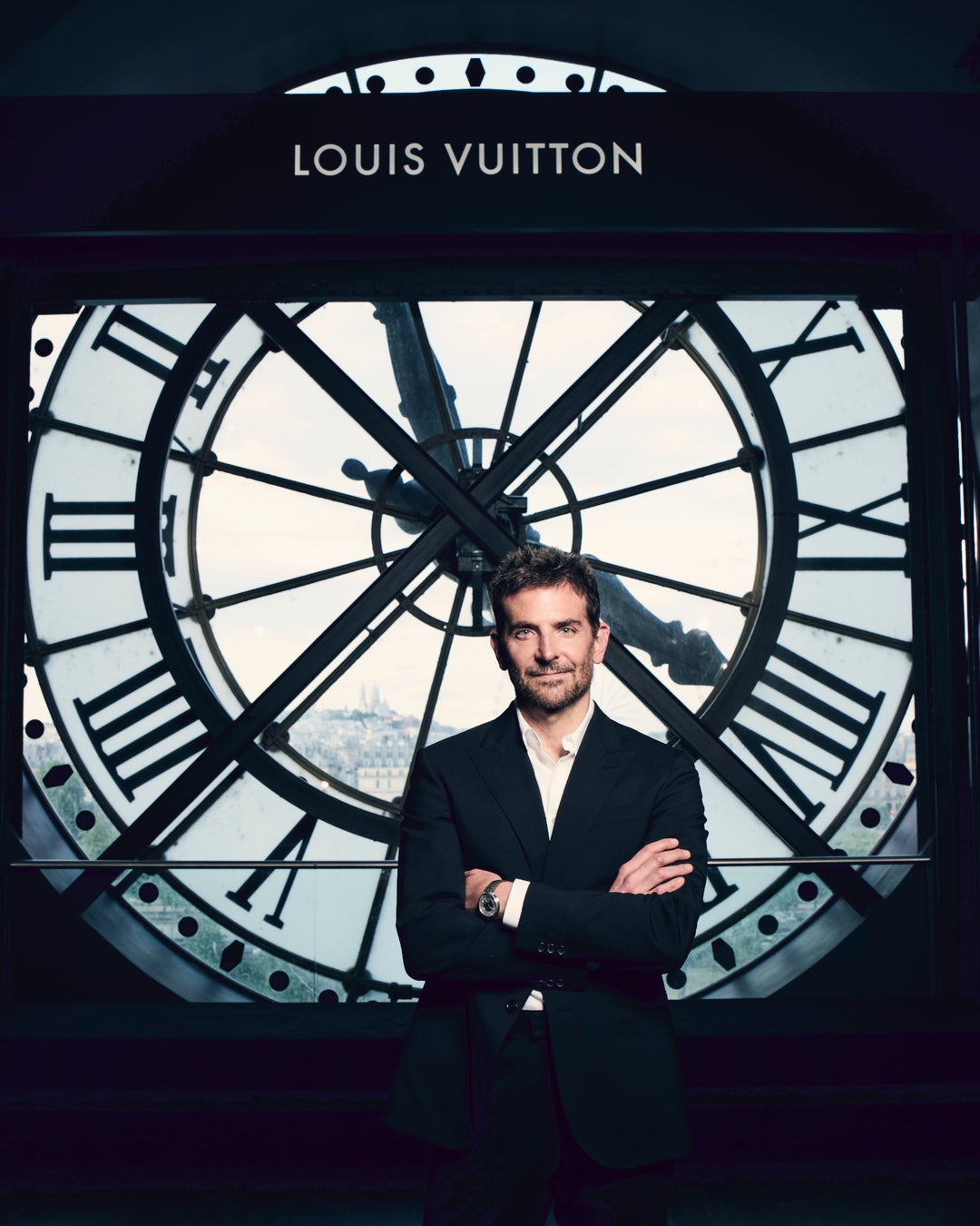 ブラッドリー·クーパーは、ネイビーのシングルブレストスーツに、シルバーグレーの文字盤の新作「タンブール」を着用。
