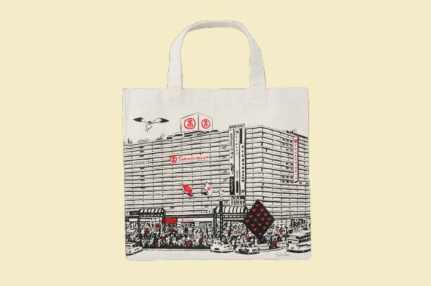 横浜髙島屋の外観を画家・イラストレーターである橋本シャーン氏が描いた記念のトートバッグです。
