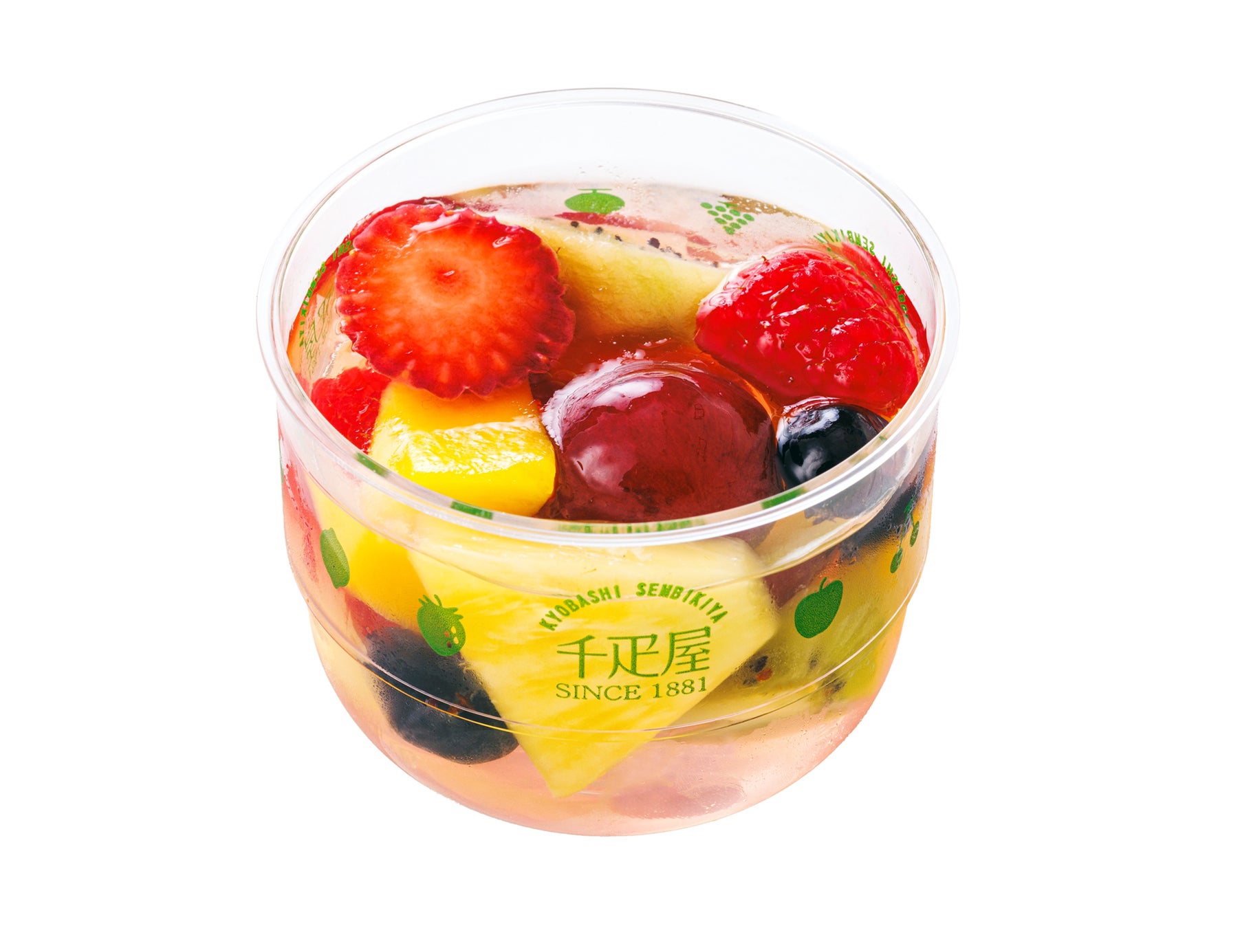 苺、ブルーベリー、ラズベリー、キウイ、パイン、ぶどう、マンゴーの7種類のフレッシュなフルーツがゴロゴロと入った夏らしいゼリーは、自分へのご褒美にも、おもたせにもおすすめです。※期間限定:~9月頃まで
