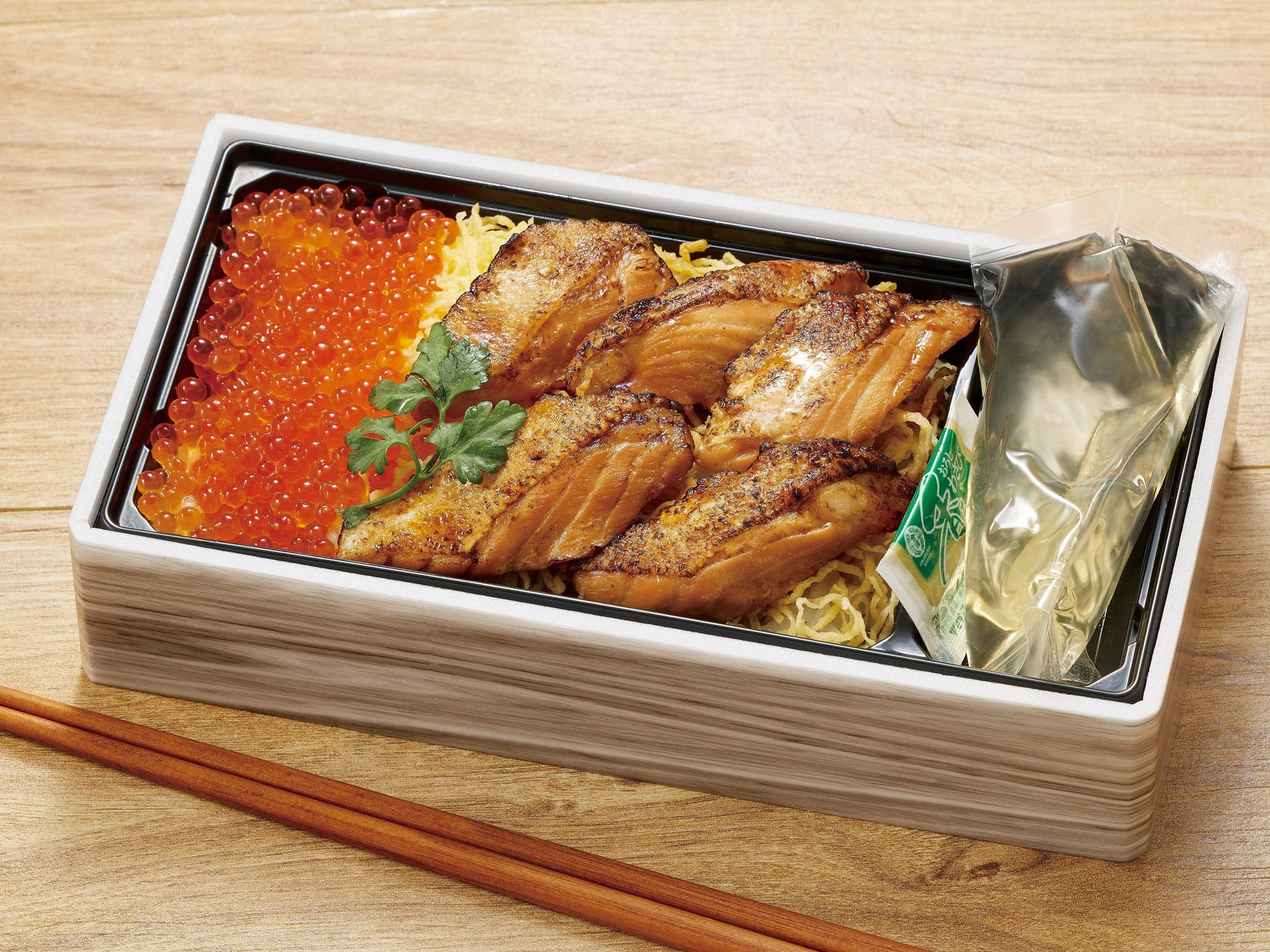 ~わさびとだしで味わう~炙りノルウェー産サーモンハラスの親子重 1折 1,490円/イーション