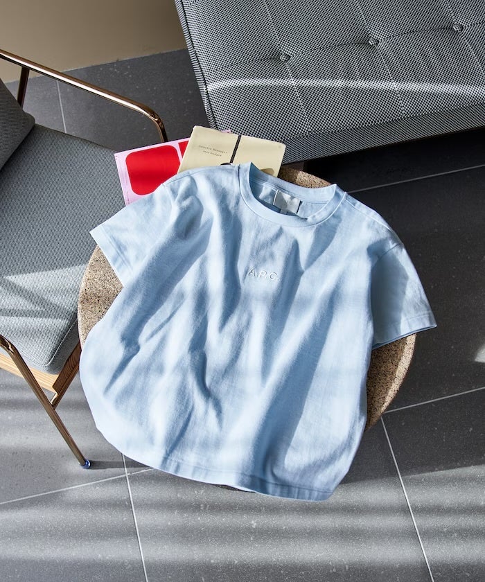 ロゴの位置や刺繍の色を別注オーダーしたA.P.C.定番のロゴ入りTシャツ。
