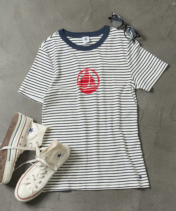 アイコニックなPETIT BATEAUのロゴマークをワッペンであしらったTシャツ