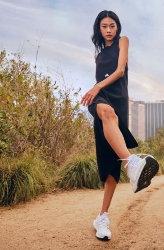 『心地よいほうを選ぶことは、人生の多くの面で、実際に良い結果をもたらしてきました。次にカメラが回るまでに、現場で一息ついて自分の中で心地よさを確かめる時間を取ったり、心に自信をくれるばかりか自分の肌にもなじむコーディネートを選んだり。心地よいほうを選ぶという心構えとアプローチのおかげで、私は前に進み、成長し続けることができました。だからこそ、私はアディダスの最新カプセル コレクションに魅力を感じ、その着想源となっているメッセージと響き合う気がしています。どのアイテムも本当に美しくて、余計な要素を削ぎ落としたデザイン、心地よいフィット、スタイリッシュなシルエットをすべて同時に叶えるものばかり。私にとって一番目を引くアイテムは、さりげないディテールを施したリブワンピース。シンプルな美しさを際立たせて、普段使いのコーディネートにフレッシュな雰囲気を加えるから。』