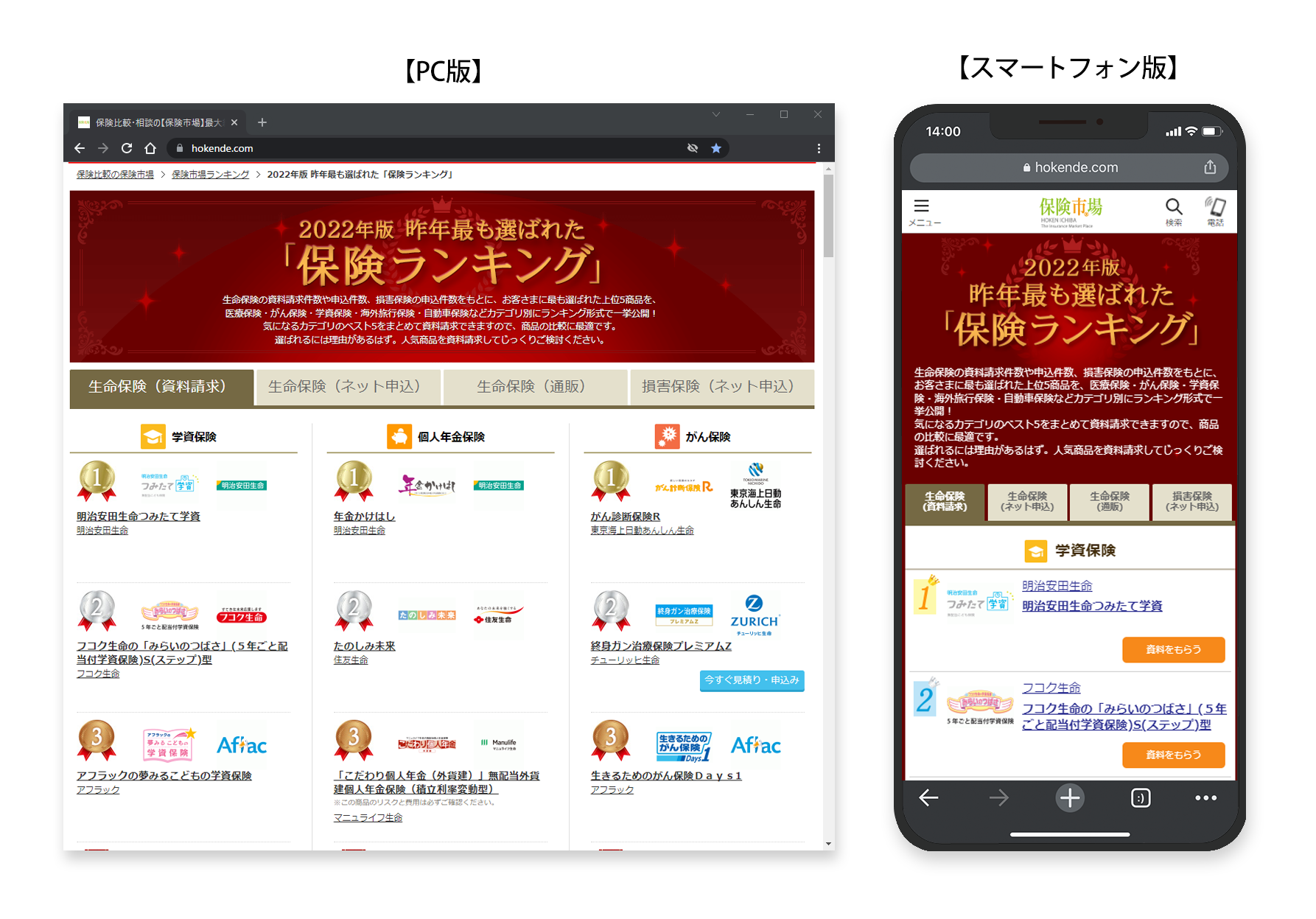 ※以下ページにて、2022年版 昨年最も選ばれた「保険ランキング」をさらに詳しくご覧いただけます。