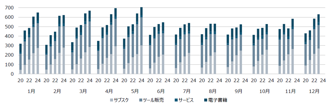 ツール販売には、一括支払いモデルのダウンロード版や法人向けライセンスの売上などが含まれます。