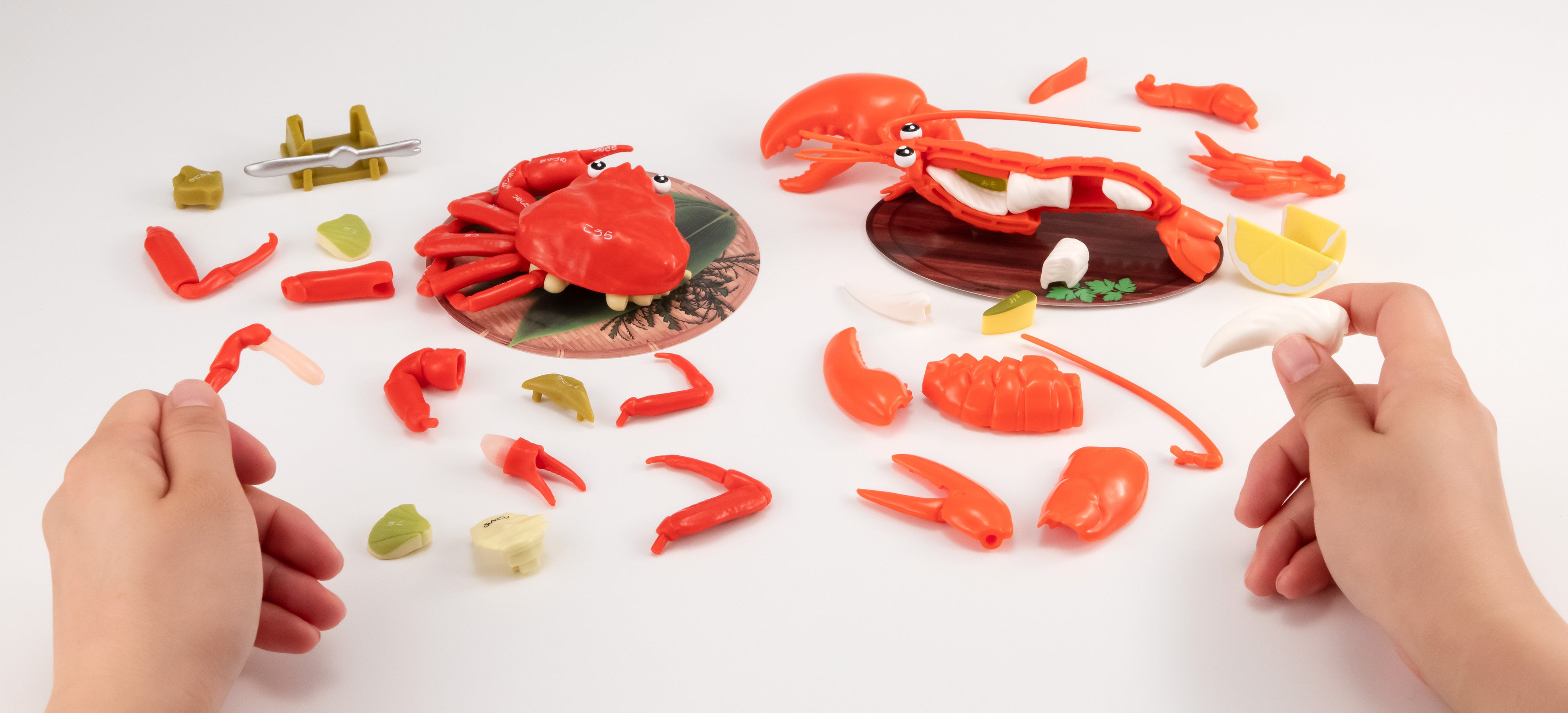 完成後は「イカ墨台座」と「皿シート」が付いていて、ディスプレイとしても楽しめます。解体パズルならではの可愛らしくこだわりの造形とともに、「組み立てる」「学ぶ」「飾る」色々な遊び方でお楽しみ下さい。