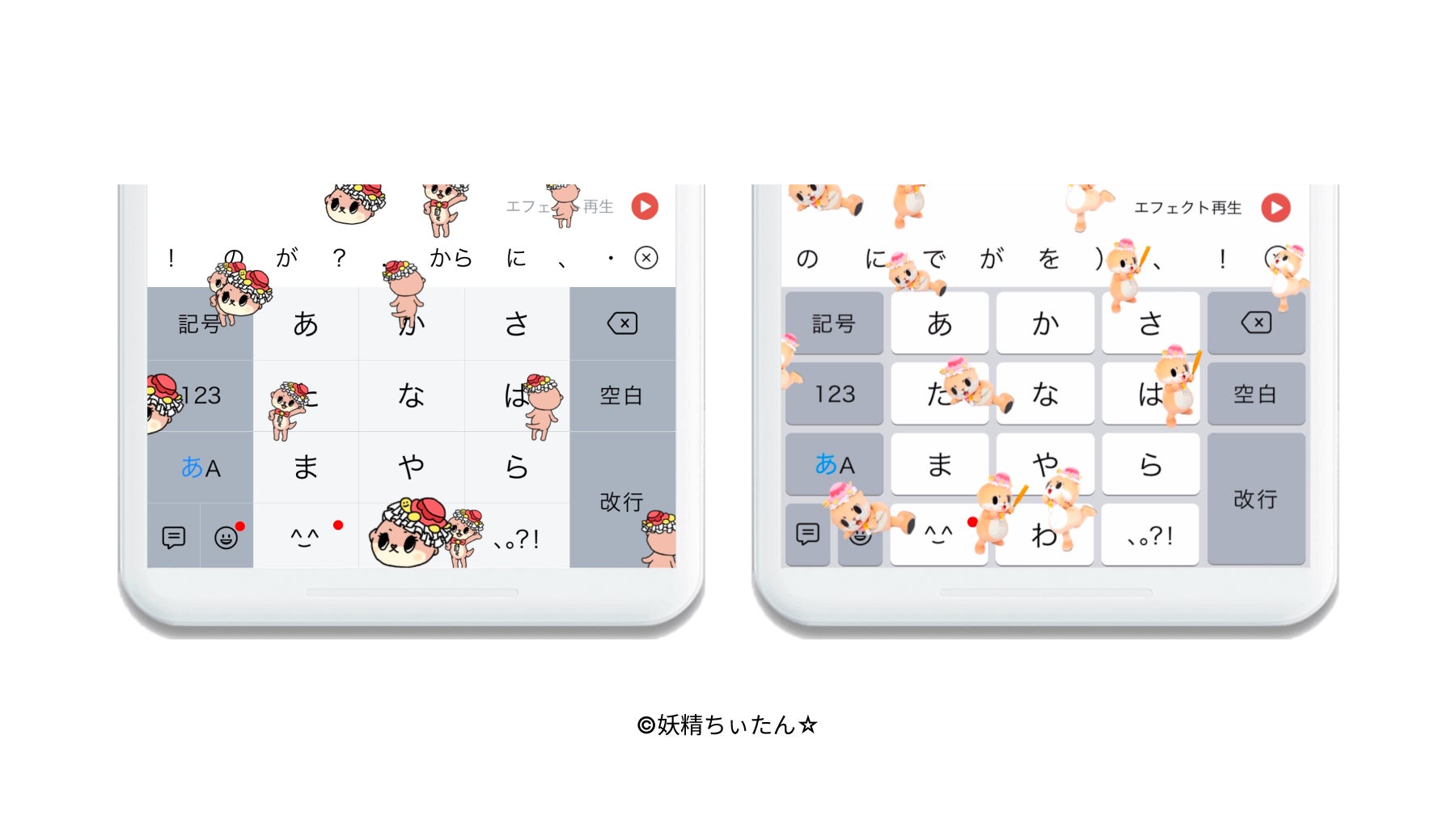 ユーザーが文字を入力し、変換候補より特定のキーワードを選択することで画像や動画がキーボード上に現れる機能です。当コラボでは特定のキーワード「ちぃたん☆」「ちぃたん」と入力することでエフェクトが再生されます。今回のコラボならではのエフェクトをお楽しみください!