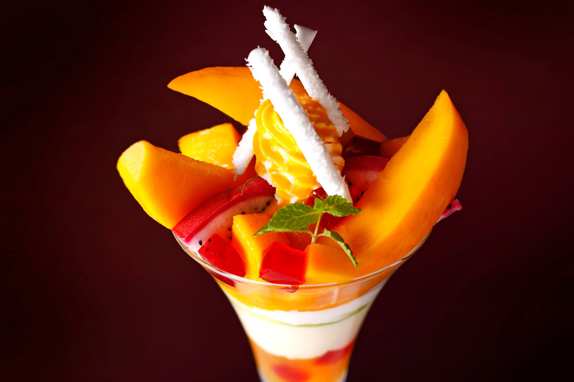 沖縄の温暖な気候の中で太陽をたっぷり浴びて育ったアップルマンゴーを使用したパフェです。果肉はとろけるように柔らかく、濃厚な味わいが特長です。