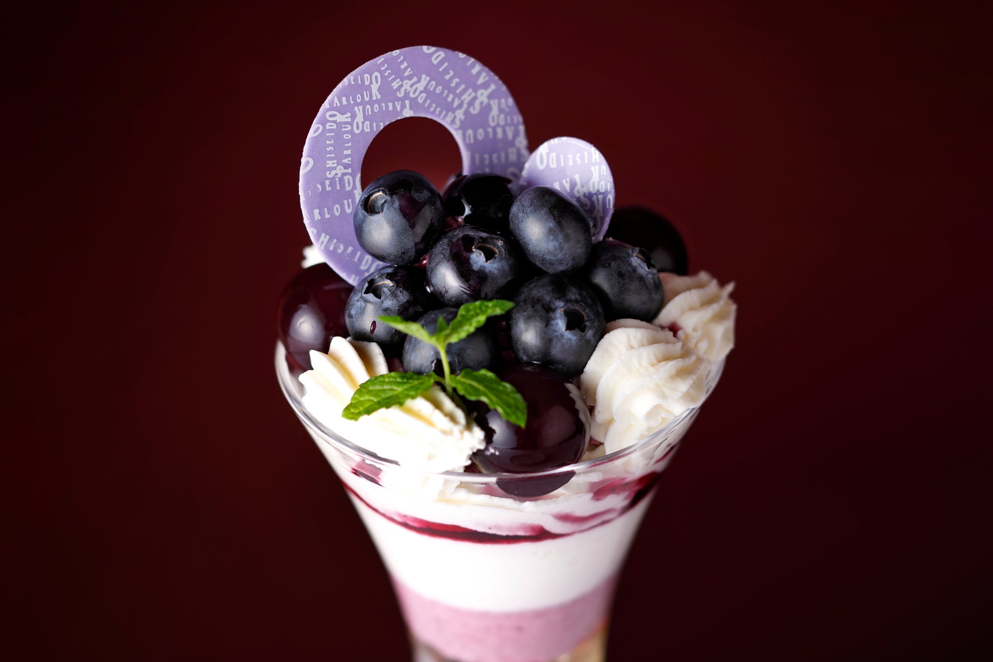 プチっとした食感と美味しさが凝縮された大粒のブルーベリーを使用したパフェです。ブルーベリーの甘酸っぱい味わいとミルクアイスクリームのマリアージュをお楽しみください。