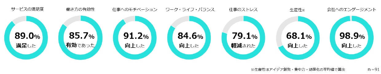 特に、参加者たちは、自らが選んだ快適な環境で仕事ができることを高く評価しました。一部の参加者においては、持ち運ぶ自身の持ち物や資料に不足があり、業務上の不都合が生じたという声もありましたが、宿泊施設備品の事前案内の強化や参加者の働き方への慣れが進むことで解決できるものと考えています。また参加者のほぼ全員が福利厚生として旅するような働き方をサポートしてもらうことで、会社へのエンゲージメントが高まると答えたことから、本サービスが企業にとっても魅力的な福利厚生の一つとして期待されます。これらの結果から、その時々の最適な環境で自由に勤務することはリフレッシュ効果を高め、仕事のモチベーション向上にもつながることが示され、本サービスの法人利用における有効性を確認しました。