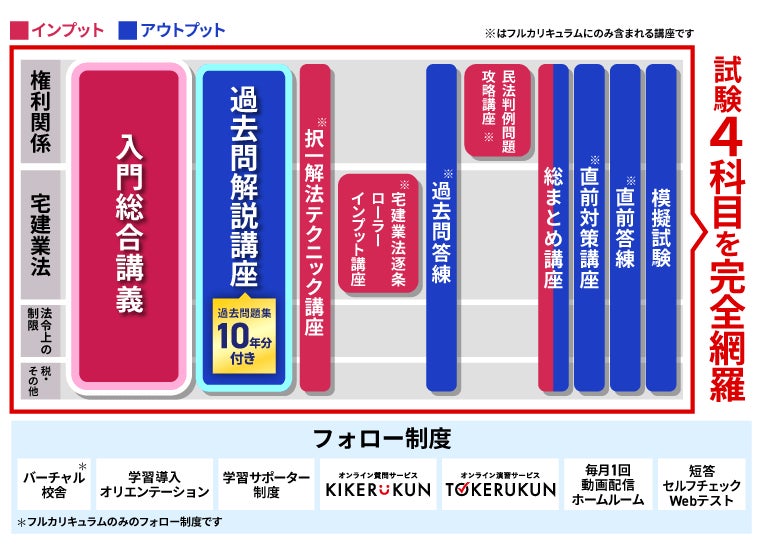 宅建試験に合格するため、 アガルートはインプットからアウトプットまで全てを網羅した合理的なカリキュラムを提供しています。