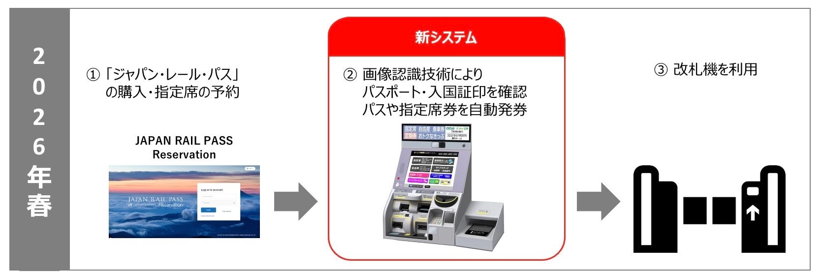 今後、2026 年春を目標に成田 、羽田 、および都区内の部主要駅に設置の指定席券売機にてジャパン・レール・パスの利用資格を自動判別の上、発券できる仕組みの導入を目指します。