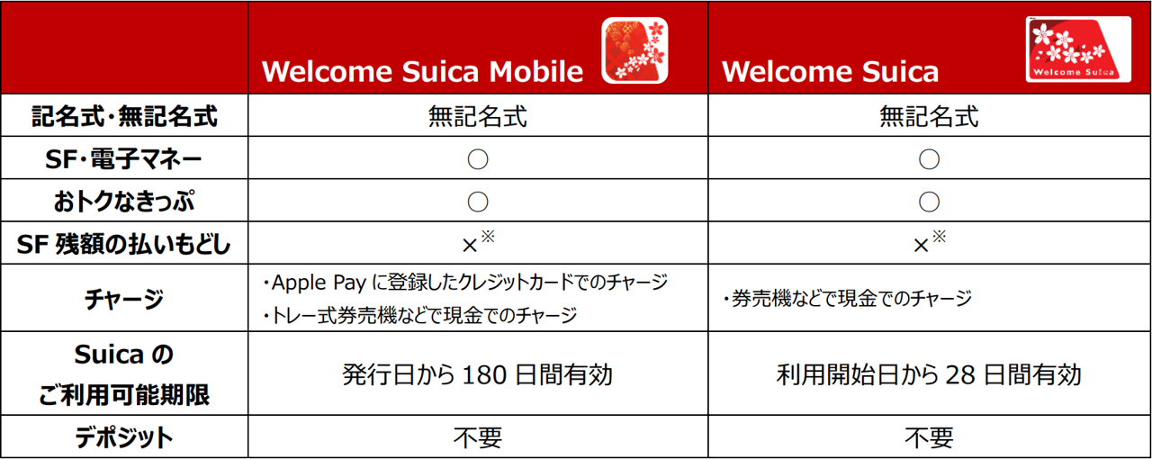 【参考】Welcome Suica MobileとWelcome Suica(カードタイプ)との違い