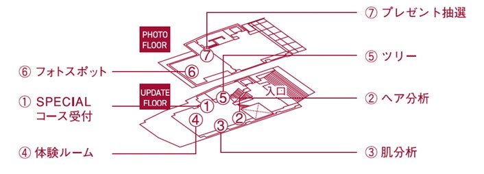 期間限定の、体験型イベント「今年より美しい来年を贈ろう。UPDATE YOUR BEAUTY」では、ホリデームードを盛り上げるだけでなく、スキンケアやヘアケアのアップデートを体感できるよう、さまざまなコンテンツをご用意しております。