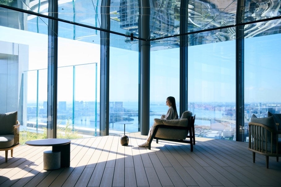 地上約 140m から東京ベイエリアを一望する「BLUE SKY LOUNGE」普段はオフィスユーザーのみが利用できる特別な空間が、イベント期間中に限り展望台としてオープンします。さらに、WOWによるアート作品「Flowing Presence」がクリスマス仕様に演出され、幻想的なひとときを演出。空と海をイメージしたオリジナルドリンクを片手に、ここでしか味わえない特別な体験をお楽しみください。