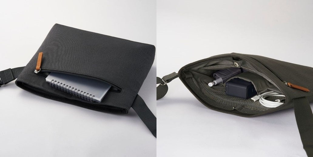 スマートなシルエットながら、充電器などを分けて収納できるポケットも完備し、お出かけに必要な荷物を十分に収納できます。