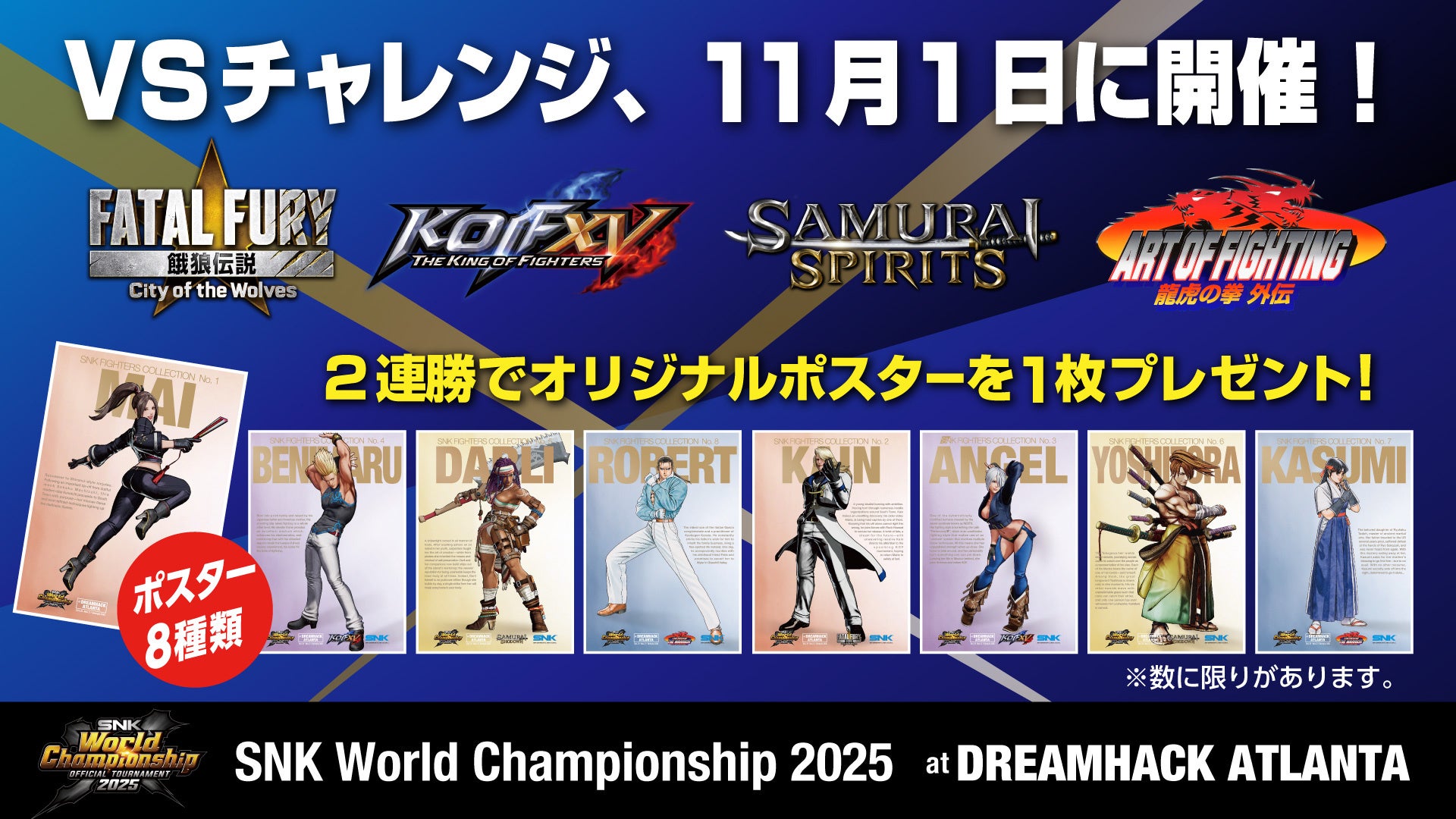 SNK格闘ゲームの連勝チャレンジを実施!2連勝でオリジナルポスターをプレゼント!