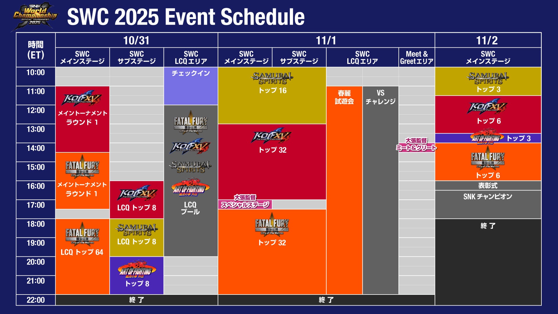 株式会社SNK (本社:大阪府大阪市)は、SNK格闘ゲームの世界一を決定する「SNK World Championship 2025 (SWC 2025)」に関する追加情報をお知らせいたします。