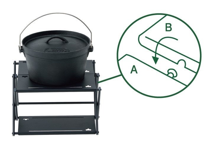 ※テーブル時は先に突起のある天板(A)をセットしてから、くぼみのある天板(B)を上から取り付ける。