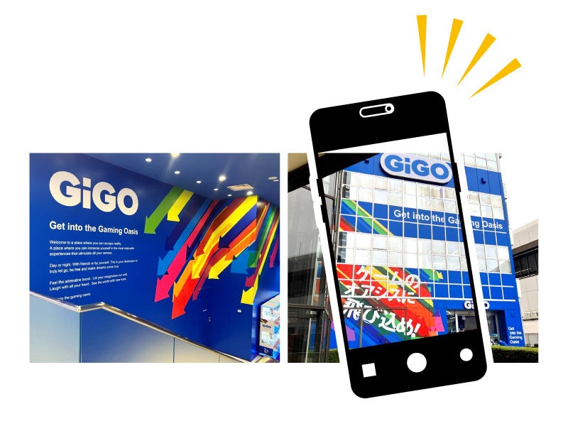 全国のGiGOグループのお店にある「GiGOロゴ」「Get into the Gaming Oasis」「ゲームのオアシスに飛び込め」を撮影して #39ギーゴ でポストしよう!