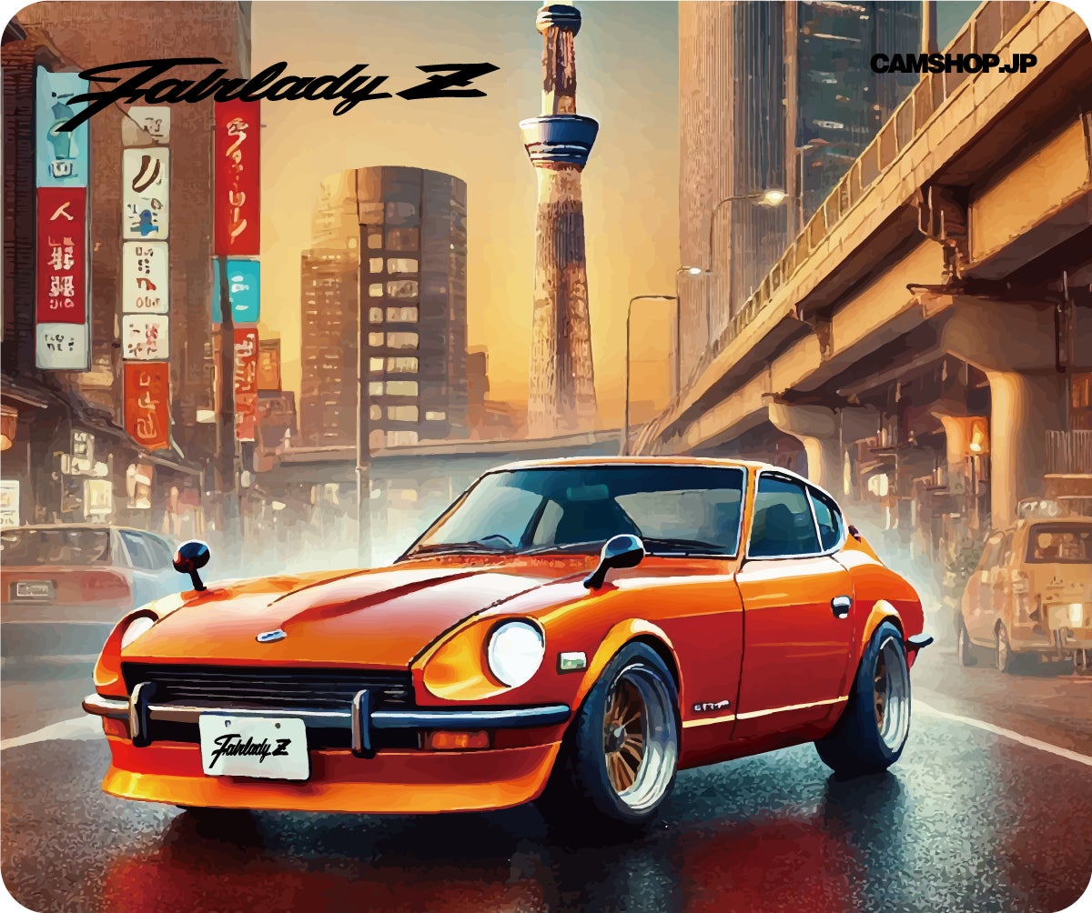 製品にはマウスパッドが付属。日産フェアレディ240Zを楽しむことができるオリジナルデザインで、デスクを彩ります。2種類あるうちのいずれかがパッケージに入るため、どちらのマウスパッドが入るのかはお楽しみとなっています。
