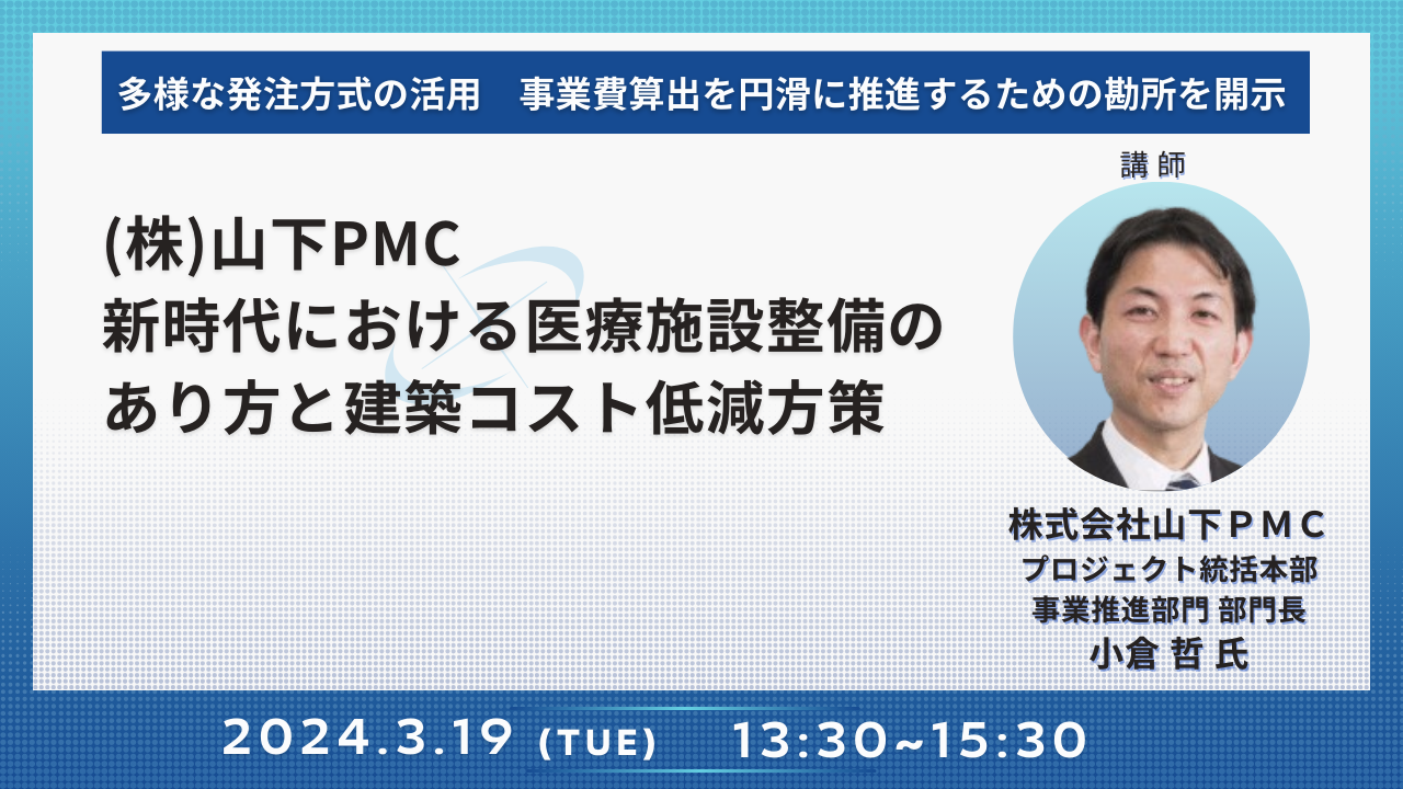 【JPIセミナー】(株)山下PMC「新時代における医療施設整備のあり方と建築コスト低減方策」3月19日(火)開催