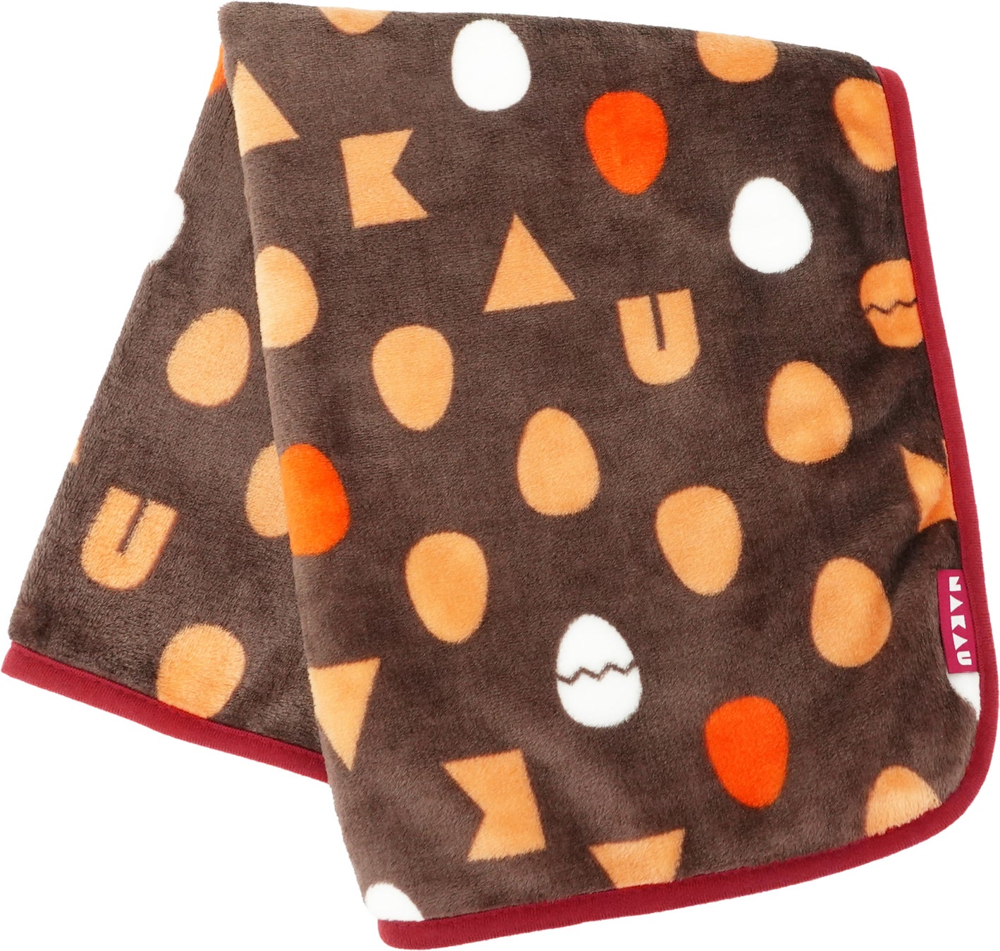 たまごデザインが特徴の、ふんわり柔らかく肌触りのよいブランケットです。大きすぎないサイズ感と軽さで、ご自宅はもちろん、外出先やオフィスなどさまざまなシーンで手軽にお使いいただけます。ボタン付きで、羽織った際に前で留められる仕様になっており、寒い季節に活躍するあったかアイテムです。