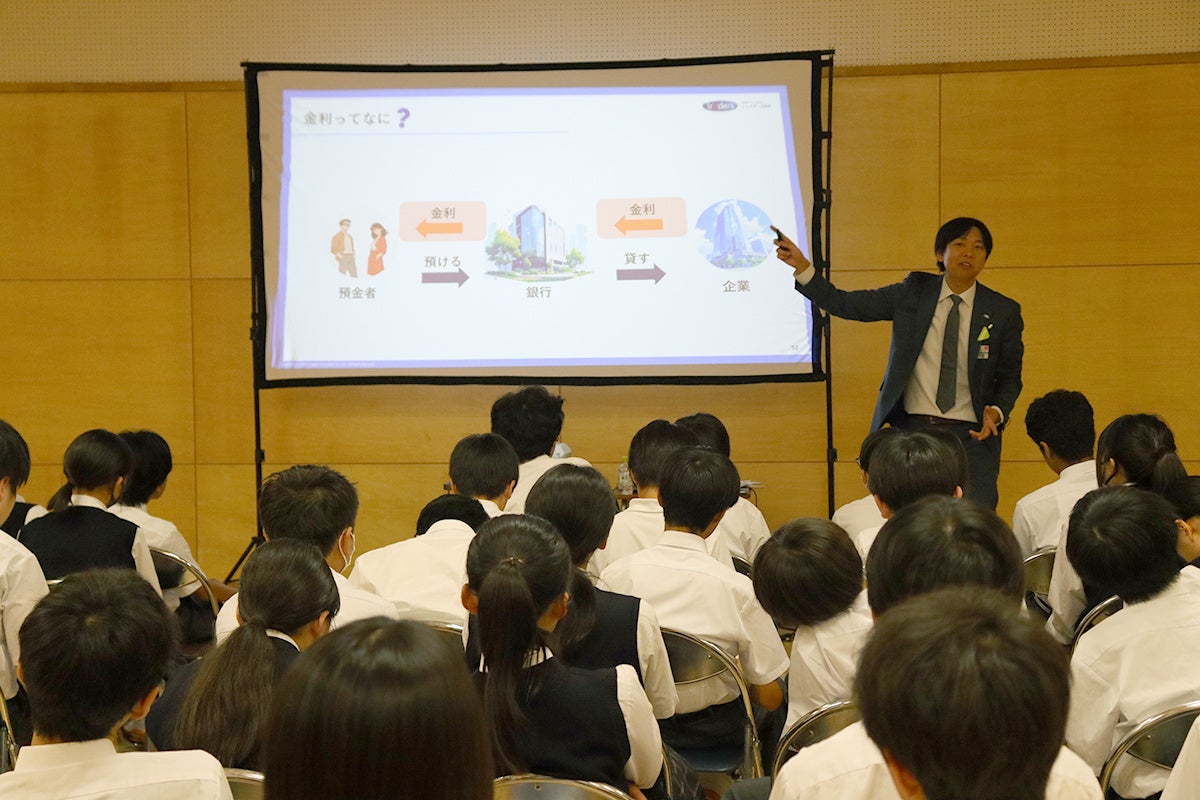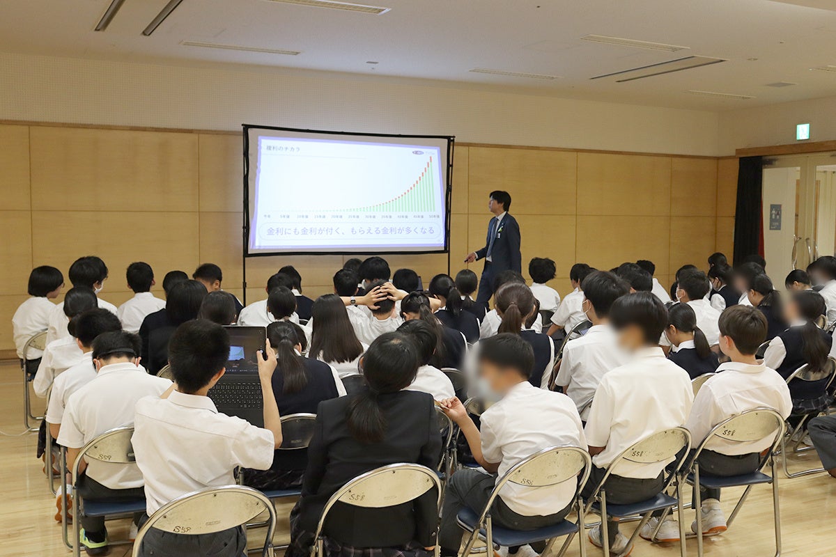 生徒の皆さんからは「今回、初めて金利について詳しく知ることができ、日本の金利と海外の金利は全然数値が違うことに驚きました。」「複利が味方になった時と敵になったときの恐ろしさを感じました。」「なかなか自分の将来のことやお金のことについて考えたことがあまりないので、この学習を通して、お金のことや、外国とのつながりを知ることができました。」「このような授業はもっと受けたくなりました。お金は生きていく中で確実に向き合うことがあり、そのお金のことを詳しく知っていく授業はいいなと思いました。」などの感想を寄せていただき、「あと4回も授業があることがうれしいです。」とのコメントにスタッフ一同安堵するとともに次回以降の出張授業に向けて気を引き締めて準備を進めているところです。