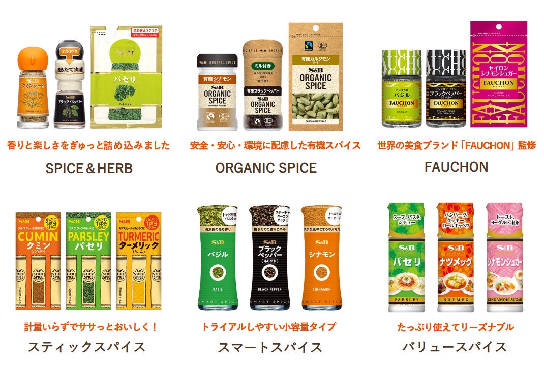 当社の洋風スパイス製品6ブランドについて、それぞれの特徴を一覧で紹介しており、お客さまのニーズに合ったブランドを探すことができます。