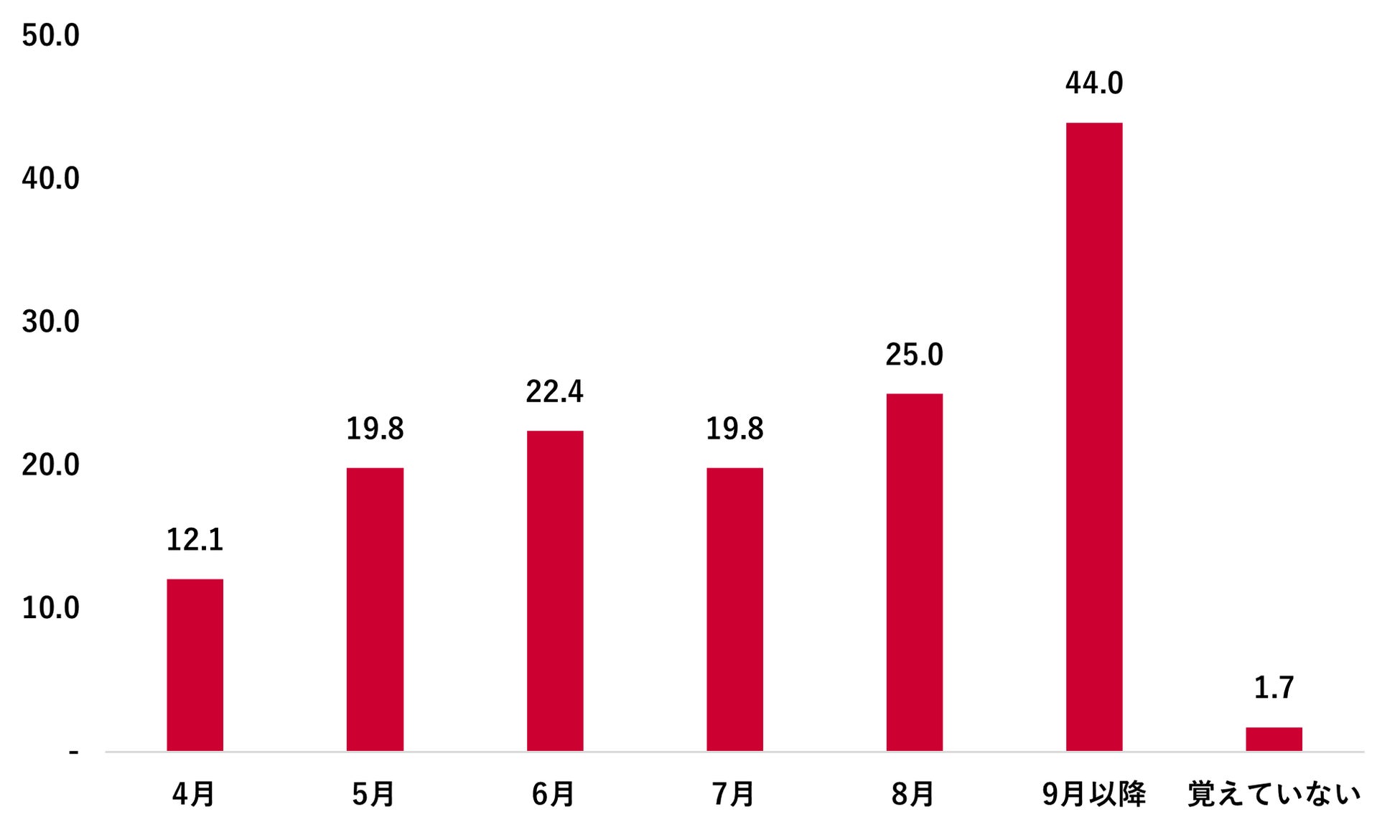 来場時期は「9月以降」が44.0%で最多だった。閉会(2025年10月13日)が近づいて、駆け込み来場の盛り上がりがあったことがうかがえる。