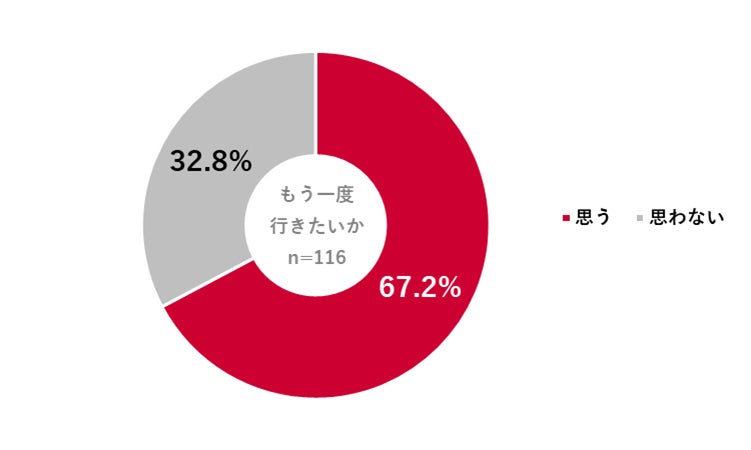 また、再訪意欲を伺ったところ、「もう一度行きたい」が67.2%となった。