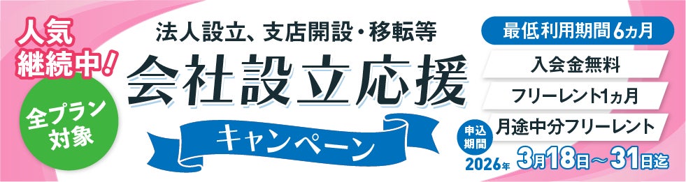 入会金無料・1か月フリーレント・月途中入会分フリーレント全プラン対象