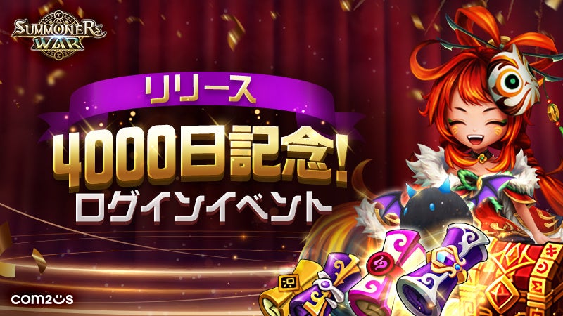 スマートフォン向けモバイルゲームをサービスしている株式会社Com2uS Japanは、iOS/Android/Steamで大好評配信中の本格RPG『サマナーズウォー: Sky Arena』(以下、サマナーズウォー)にて、サービス4000日を記念して最大4000個のアイテムを獲得できる大型イベントの開催をお知らせいたします。