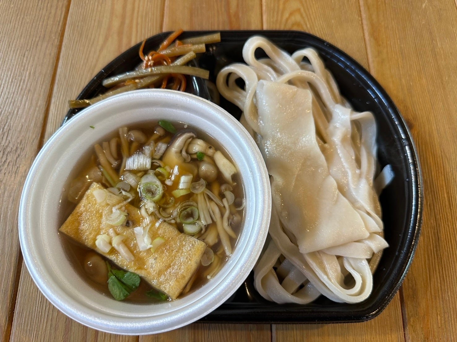 埼玉県内では唯一ともいえる山梨の吉田うどんが楽しめるうどん店。麺はオリジナル国産小麦を使用しており、最大の特徴は麺の硬さとコシの強さ。埼玉うどんフェアではこれまで馬肉うどんと馬肉カレーうどんが提供されたが、今回は「きつねうどん」が登場。歯応え抜群の硬い麺と柔らかい揚げのコラボに脱帽必至。
