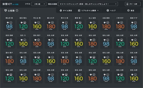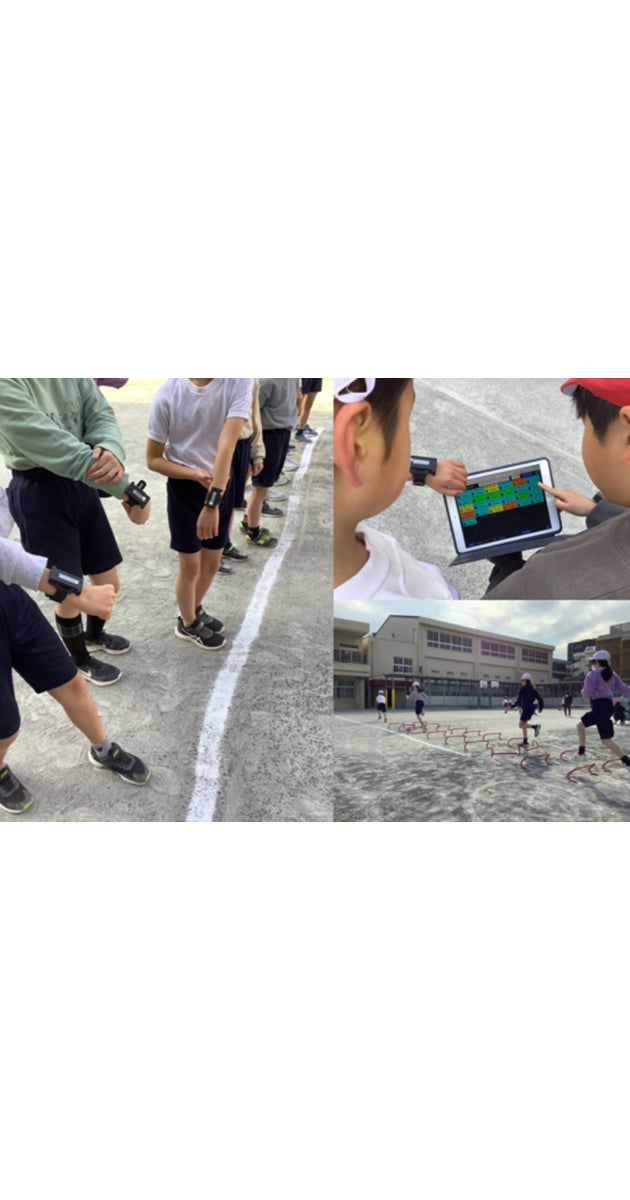 本ソリューションは、児童生徒の腕にリストバンド型デバイスを装着し、心拍数や消費カロリーなどの運動情報をリアルタイムで可視化します。児童生徒および教員はタブレット端末でデータを確認できるため、教員は安全な授業管理が可能となり、児童生徒は自らの運動状態を学習の振り返りや目標設定に役立てることができます。