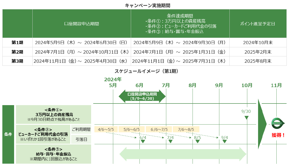 【プレゼント条件】 条件達成締切日までに開設された口座にビューカードのご利用代金引落実績がある