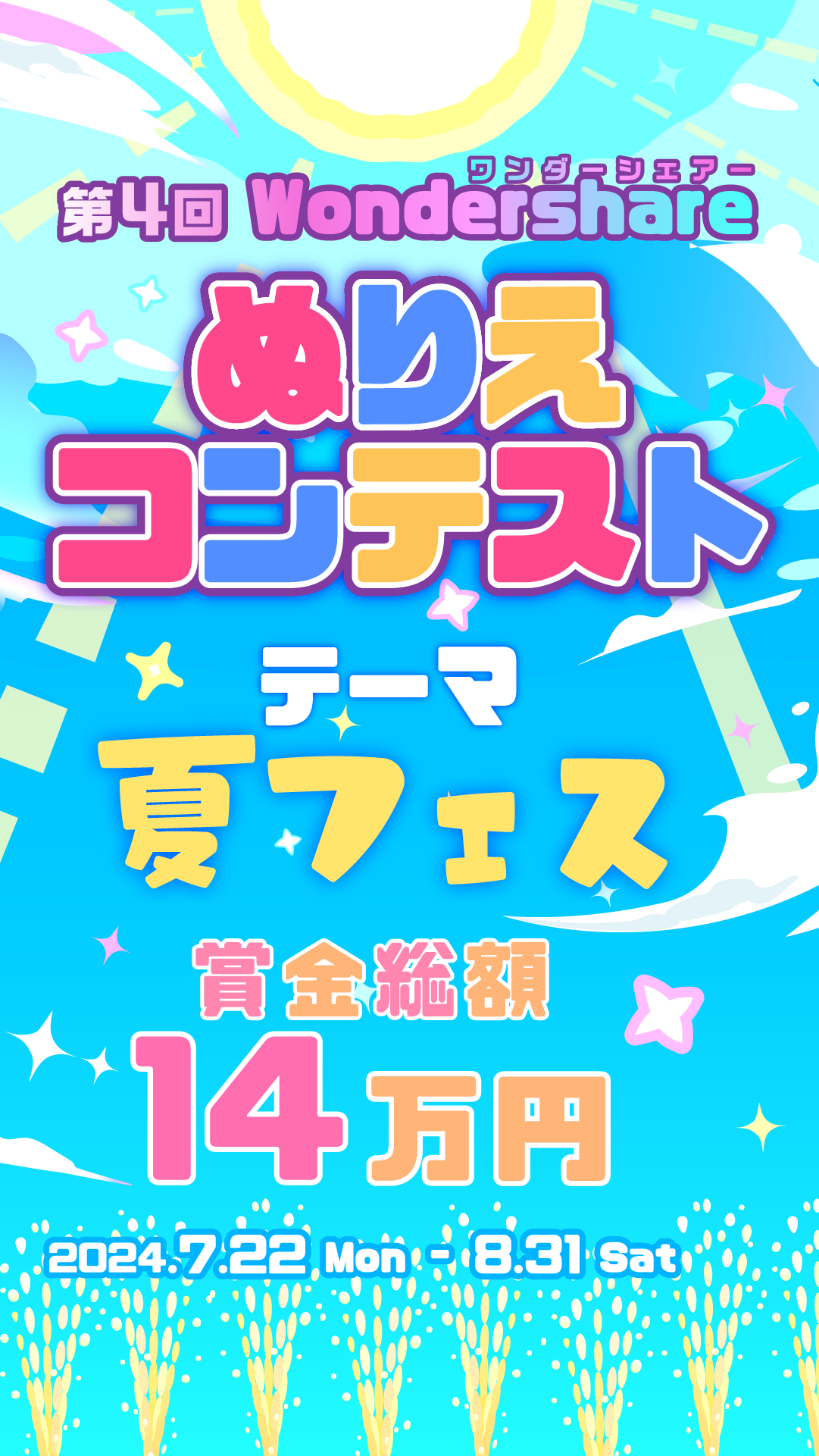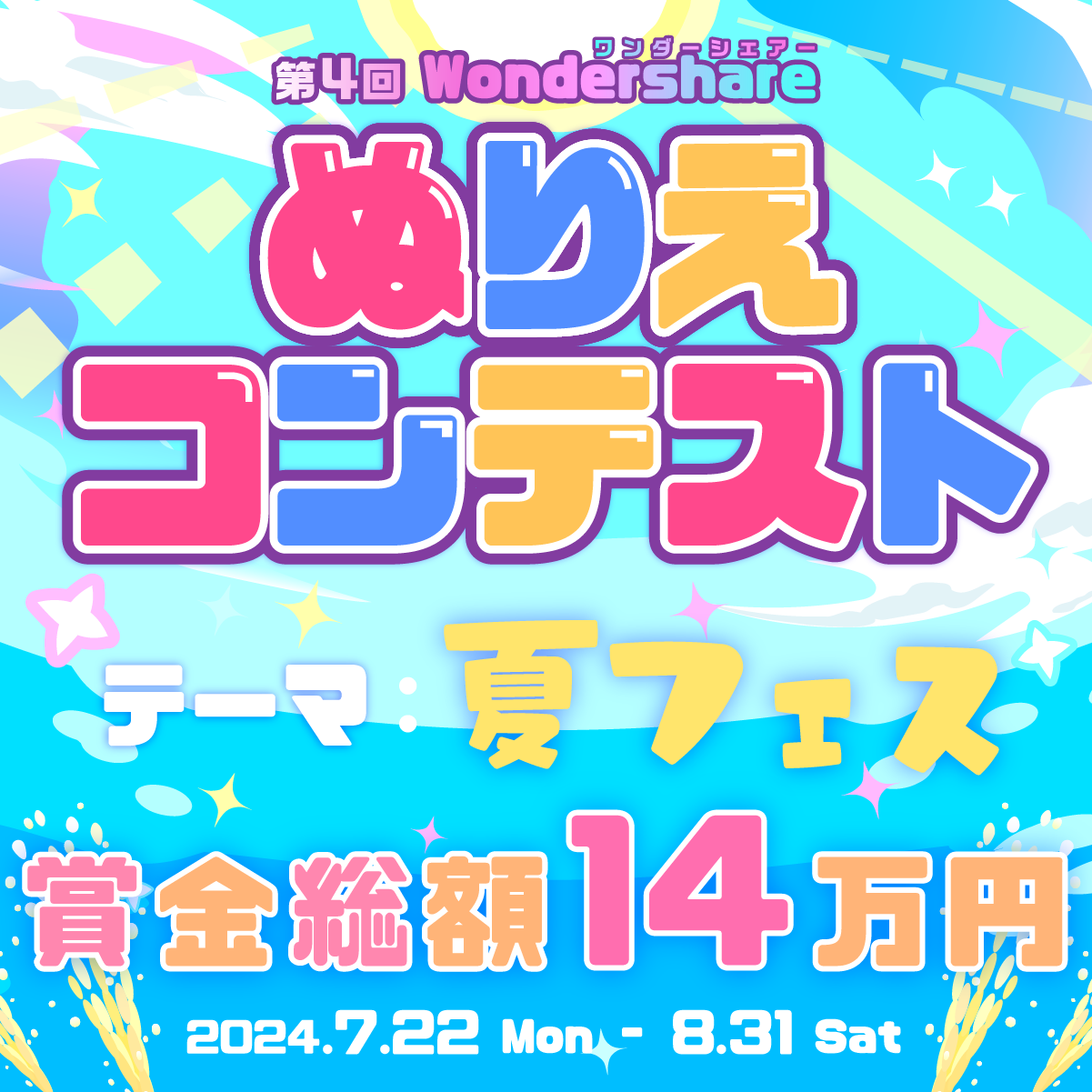 【賞品総額14万円】人気イラストレーター描き下ろし 第4回 Wondershare ぬりえコンテストが8月31日まで開催★!