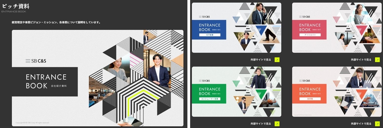 各事業本部の異なる職種の社員9人によるインタビューを掲載し、よりリアルな業務内容やキャリアパスについて理解を深めることが可能で、それぞれがSB C&Sを選んだ理由に迫る内容を掲載しています。また、働く様子や環境が分かる写真を多数掲載して職場の魅力が伝わるような内容にしています。