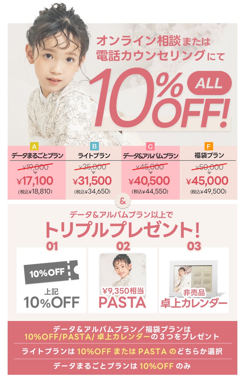 セール価格からさらに10%OFF+データ&アルバムプラン以上でPASTAと卓上カレンダーのプレゼントも!