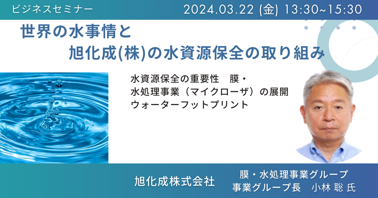 【JPIセミナー】「世界の水事情と旭化成(株)の水資源保全の取り組み」3月22日(金)開催