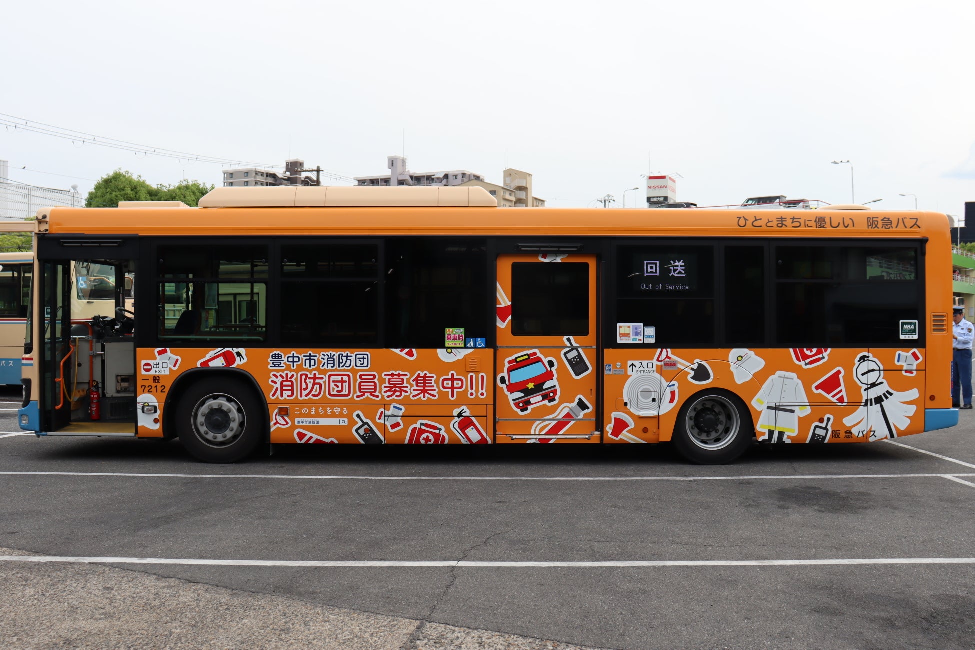 豊中市消防局は、消防団活動の周知と団員募集を目的に、阪急バスに現役消防団員がデザインしたラッピング広告を行います。