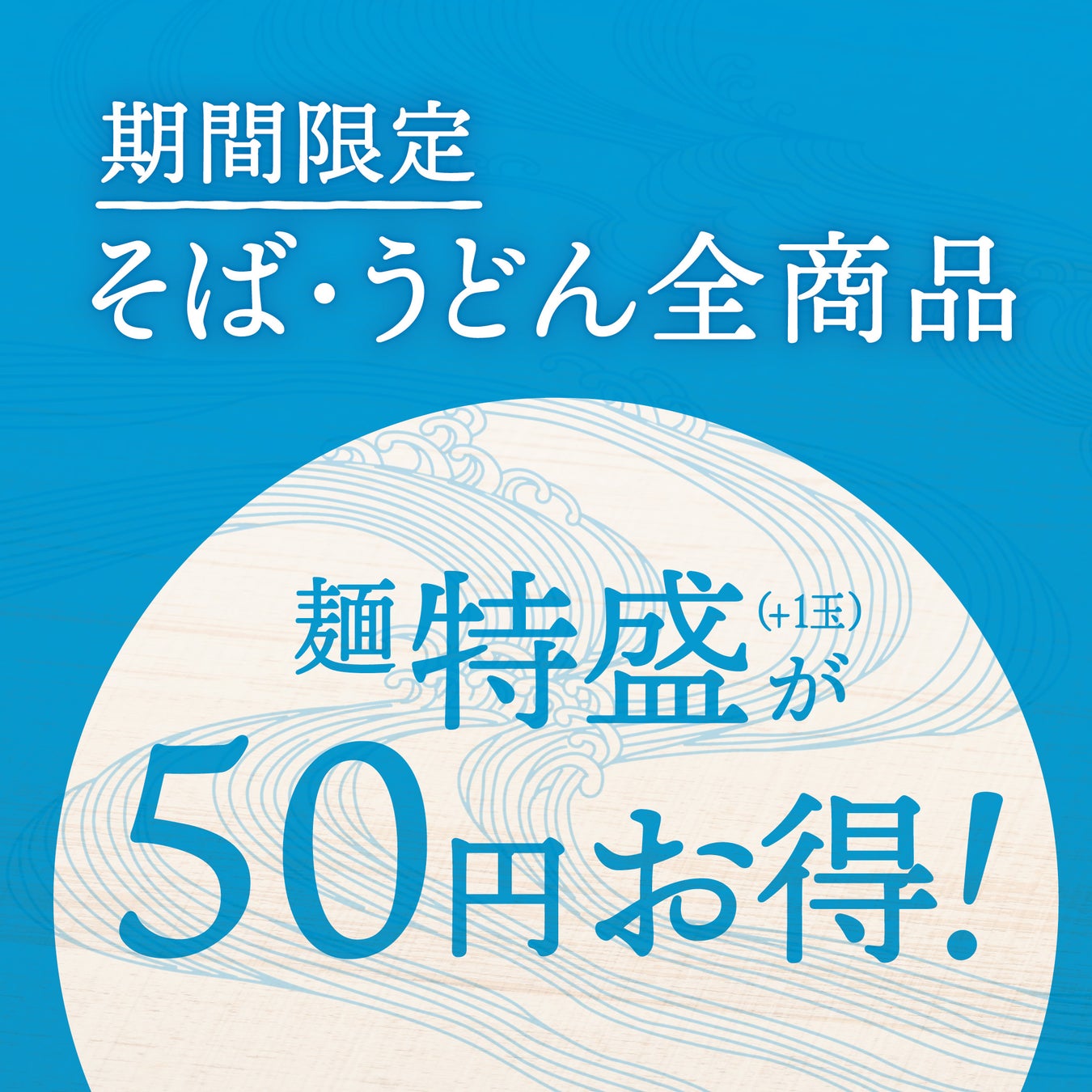 期間限定で全商品の麺特盛(+1玉)を通常より50円(税込)お得に販売!